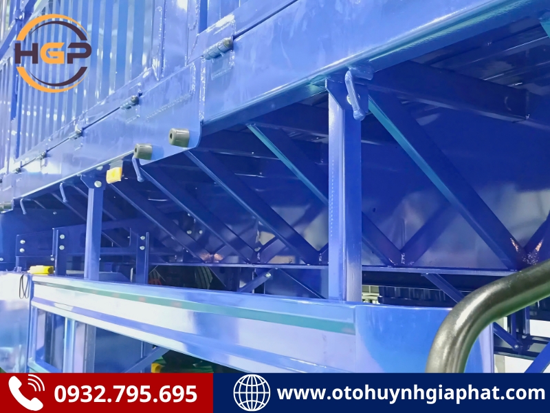 - Thiết kế linh hoạt: Hệ thống lồng có thể tháo lắp linh hoạt, thuận tiện cho việc bốc dỡ hàng hóa. Mui bạt che chắn chắc chắn giúp bảo vệ hàng hóa khỏi thời tiết, đặc biệt phù hợp với điều kiện khí hậu Việt Nam.